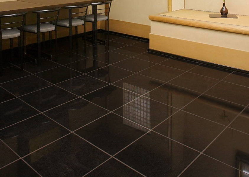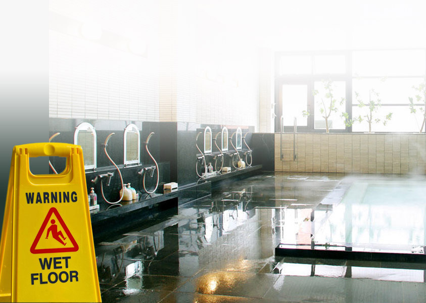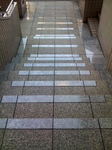 滑りやすい床材はいろいろな素材が考えられます。大理石や御影石の石材を始め、テラゾー、タイル、セラミックタイル、Pタイル、化学床、リノリウム、ガラス、金属など様々です。