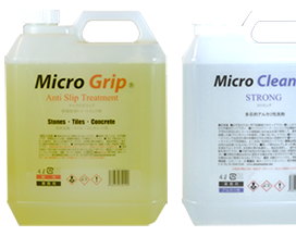 防滑施工を行う前に必要不可欠な素材に応じた各種クリーナーや、マイクログリップによる防滑施工後のメンテナンスとして必要な、専用の姉妹品アイテムも数多く取り揃えております。